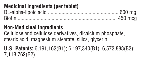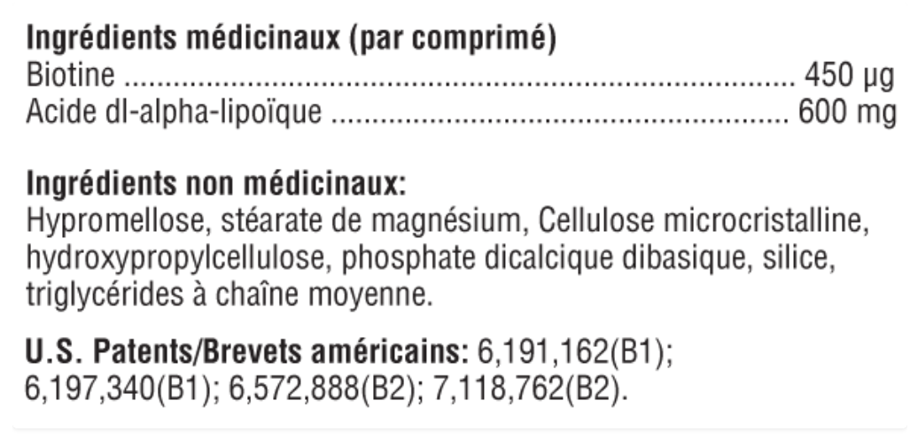 Biotine ...... 450 mcgDL-acide alpha-lipoïque ...... 600 mg