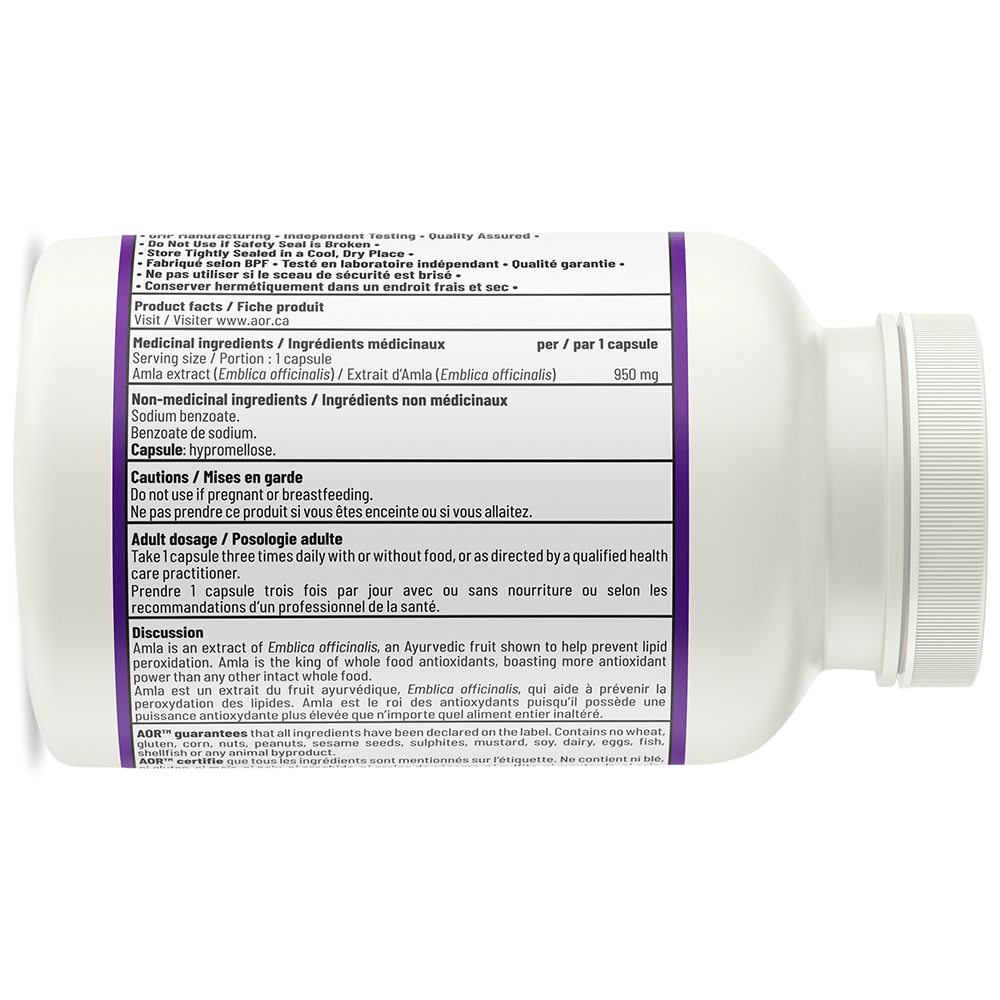 Ingrédients par capsule:Extrait d'amla (Emblica officinalis) 950 mg