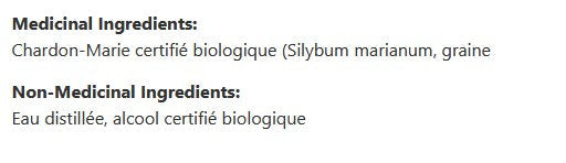Ingrédients non-médicinaux : Eau distillée, alcool certifié biologique