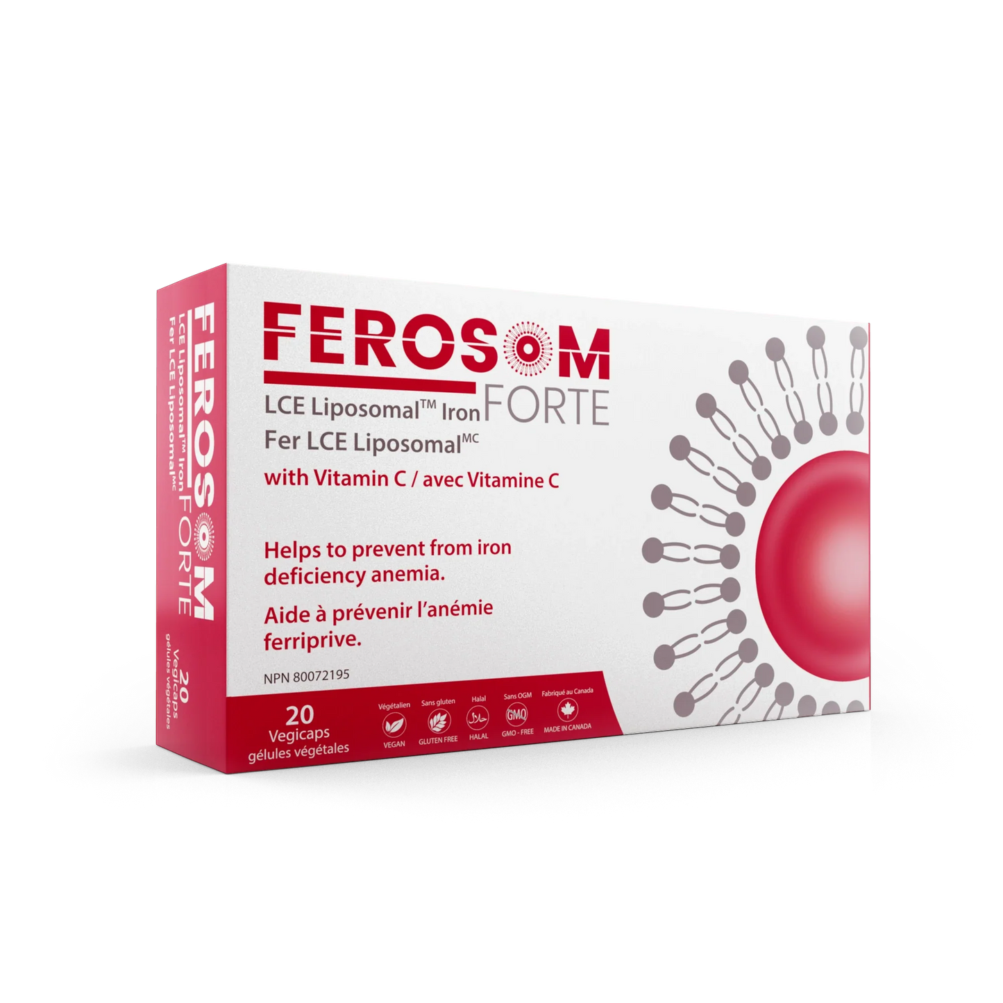 Protégées par notre LCE Coat™ exclusif et infusées de vitamine C, les capsules Ferosom Forte sont conçues pour vous. Alors que la plupart des suppléments de fer sont décomposés par l'acide gastrique et les bactéries, notre revêtement de technologie d'encapsulation liposomale évite la dégradation de l'estomac et va directement dans votre intestin. Cela signifie pas de douleur à l'estomac, de nausée ou de constipation. Juste un complément simple et efficace avec le taux d'absorption le plus élevé à côté du fer IV.