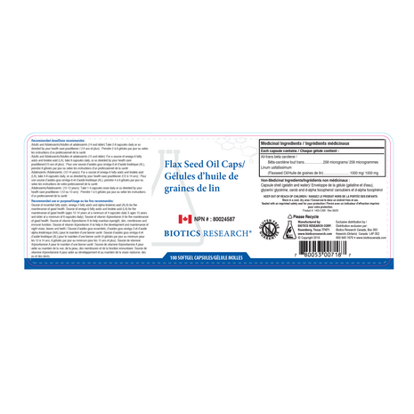Ingrédients non-médicinaux : Huile de graines de lin, enveloppe de la capsule (gélatine, glycérine, eau et caroube). Ce produit est sans gluten et sans produits laitiers.