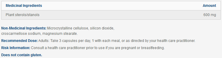 Ingrédients médicinaux (par gélule) :Stérols végétaux/stanols............................... 600 mg