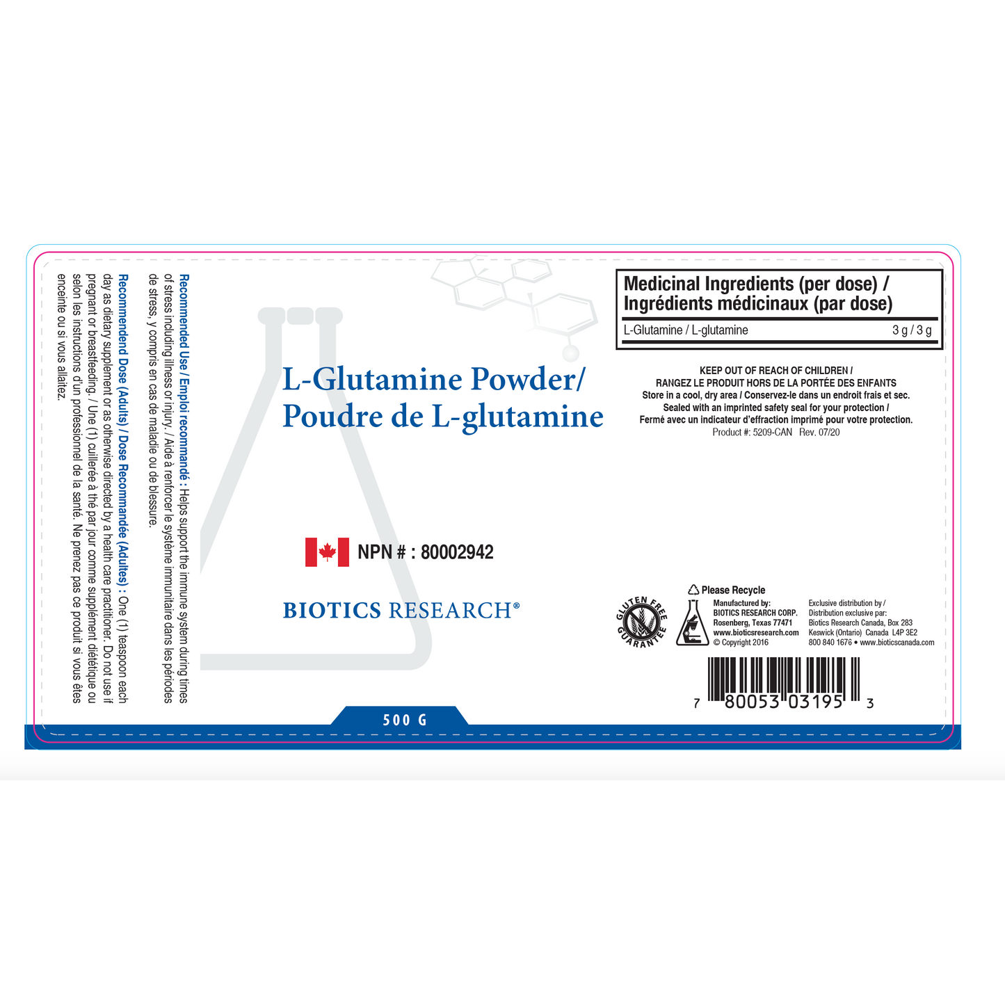 - La L-glutamine est l'acide aminé le plus abondant dans le corps. Bien que le corps fabrique de la glutamine pendant les périodes de stress extrême (comme après un exercice très intense ou une blessure), dans certaines circonstances, le corps peut avoir besoin de plus de glutamine qu'il ne peut en faire. La majeure partie de la glutamine est stockée dans les muscles, suivie par les poumons, où une grande partie de la glutamine est fabriquée. Selon le centre médical de l'Université du Maryland (https://umm.edu.com), la glutamine fonctionne comme un composé important pour éliminer l'excès d'ammoniac (un déchet courant dans le corps). Il aide également aux fonctions du système immunitaire et semble être nécessaire à une fonction cérébrale normale et à la digestion. La glutamine aide à protéger la muqueuse gastro-intestinale et est un carburant majeur pour les entérocytes. Il soutient également les tissus du corps qui se retournent rapidement, tels que les cellules intestinales (épithélium intestinal). Des niveaux élevés de cortisol pendant les périodes de stress peuvent réduire les réserves de glutamine du corps. La poudre de L-glutamine fournit 3 g de L-glutamine par cuillère à café, sous forme d'acide L-amino non hydrolysé et de forme libre.