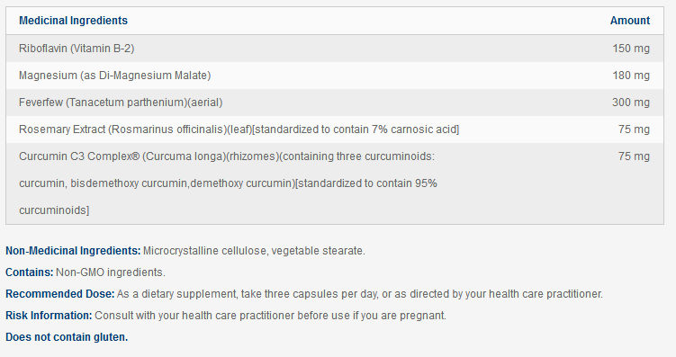 Migranol est un mélange de nutriments spécifiques et d’extraits végétaux conçu pour aider les personnes souffrant de migraines récurrentes. Ce produit contient des curcuminoïdes et de l’extrait de romarin afin de favoriser une saine réponse inflammatoire ainsi que du magnésium pour ses effets prouvés comme relaxant musculaire. Cependant, l’ingrédient star est la grande camomille, une plante utilisée traditionnellement et bien connue pour sa capacité à soulager les maux de tête. Contrairement à de nombreux analgésiques, accessibles en vente libre et couramment utilisés par les personnes souffrant de tensions nerveuses et de migraines, ce produit est sécuritaire pour une utilisation à long terme.