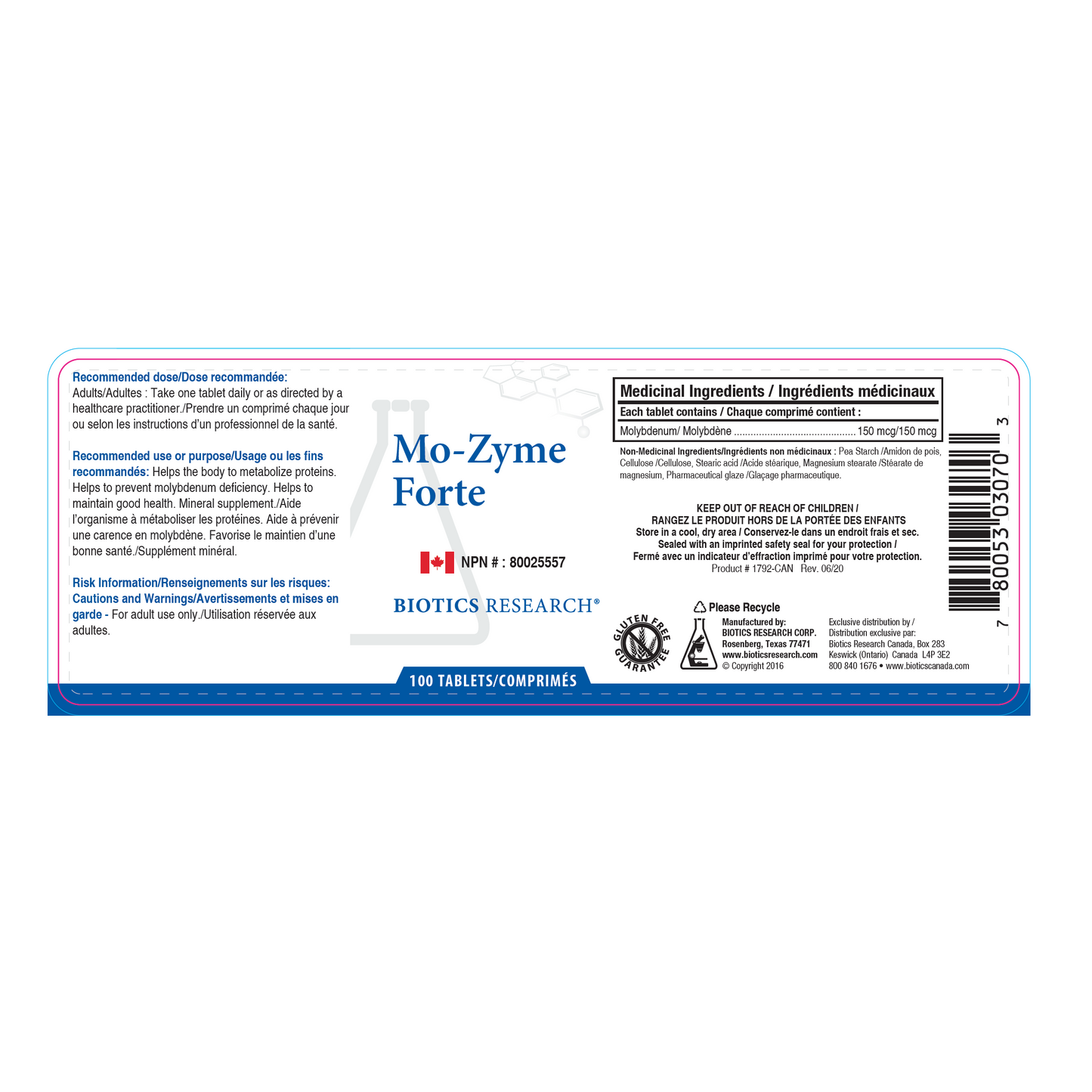 Ingrédients : Molybdène source de culture végétale 150 mcg