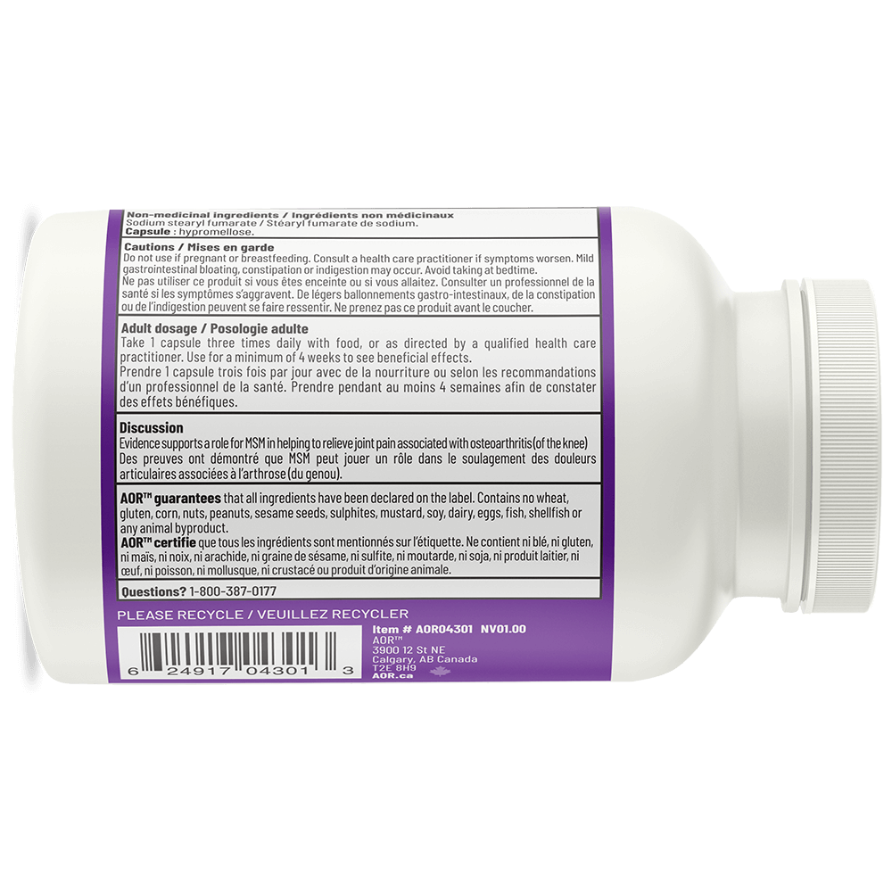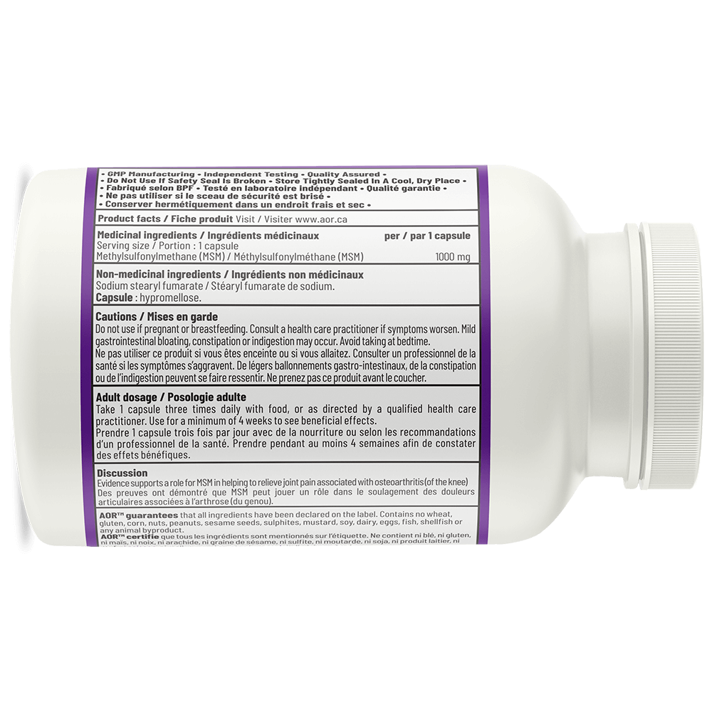 MSM d’AOR fournit une dose efficace d’une forme bénéfique de cet important élément qu’est le soufre.