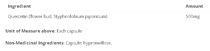 Ingrédient (par capsule):Quercétine (bourgeon de fleur, Styphnolobium japonicum) 500mg