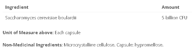Ingrédient (par capsule):Saccharomyces cerevisiae boulardii 5 milliards d'UFC