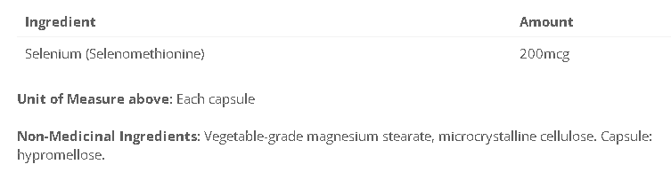 Ingrédient (par capsule):Sélénium (Sélénométhionine) 200mcg