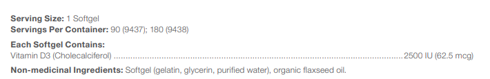 - 2 500 UI de vitamine D par gélule permettent un dosage quotidien facile